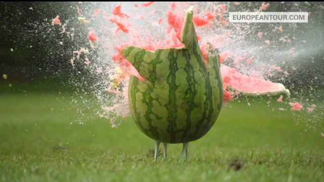Профессиональный гольфист разрывает арбуз попаданием мяча (ВИДЕО)