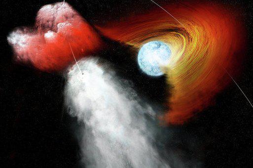 К большому удивлению ученых, они натолкнулись на еще большую загадку – оказалось, что от данной нейтронной звезды исходят мощные пучки плазмы, разогнанные до очень высокой скорости. Небольшие джеты астрофизики встречали у пульсаров и раньше, однако даже самые мощные из них не могли соперничать в силе с "плевками" даже спящих черных дыр.