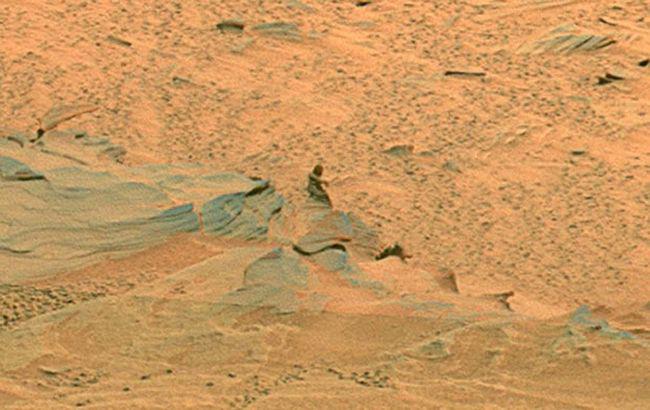 Это открытие принадлежит уфологам, которые нашли на фотографиях марсохода NASA Curiosity силуэт таинственной женщины, которая одета в черный плащ.