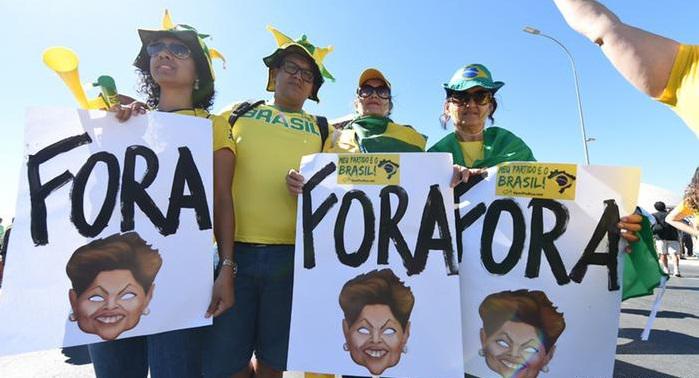 В столице страны Рио-де-Жанейро многие демонстранты держали плакаты, на которых было написано «Долой Дилму и Партию трудящихся».