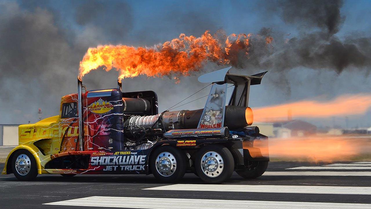 Самый быстрый реактивный грузовик в мире расплавил асфальт на автошоу в США (ВИДЕО)