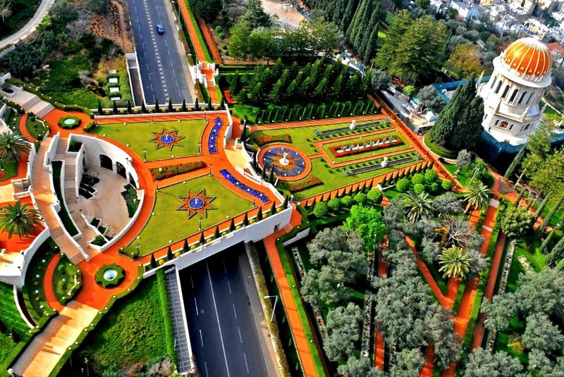 Центр одной из самых молодых религий бахаи расположен в Хайфе и известен террасными садами, раскинувшимися на горе Кармель. Протяженность террас — около километра, и ведут они к вершине горы, где захоронены мощи Баба — иранского пророка, предсказавшего приход основоположника бахаизма Бахауллы. Вера бахаи зародилась в середине XIX века в Персии. Бахаулла заявил, что он посланник единого Бога, а Авраам, Моисей, Зороастр, Кришна, Будда, Христос, Мухаммед и Баба — его предшественники. В 1868 году Бахаулла был сослан в Хайфу. Сюда потянулись паломники из Персии и Египта. Вскоре город стал центром религии. На возведение садов потратили 250 миллионов долларов. Деньги пожертвовали последователи бахаизма.