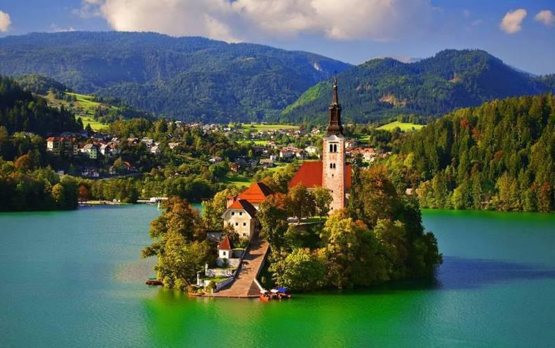 Блед. СловенияКурортный город Блед — настоящий рай для тех, кто хочет насладиться природой, погулять по горам, искупаться в чистейшем озере и подышать свежим воздухом. Этот укромный городок славится не только природными богатствами, но и необычной церквушкой на маленьком зеленом острове посреди небольшого озера.