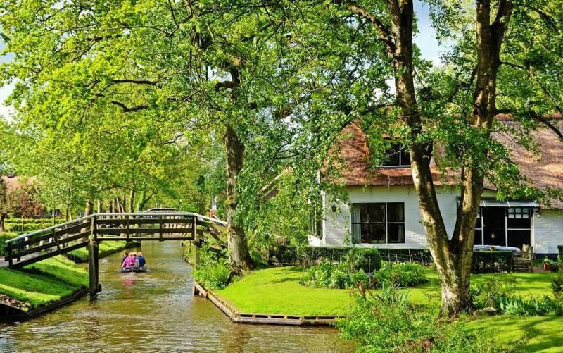 Гитхорн. НидерландыИзюминкой этого поселка является то, что здесь нет ни машин, ни дорог. Вместо них — каналы и лодки. И местные жители «паркуют» свои лодки прямо возле зеленых участков.