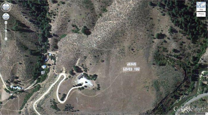 Надпись «Иисус любит тебя» в лесу Бойсе.
