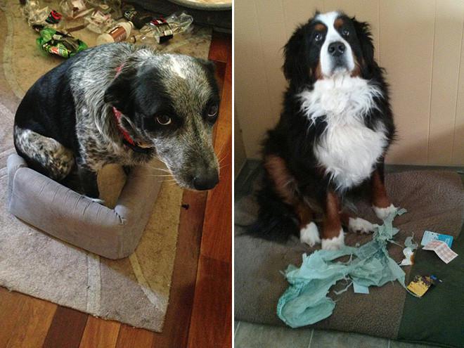 Поэтому мы подготовили специальную подборку снимков, когда собаки были пойманы с поличным прямо на месте преступления. Они прекрасно понимают, что виноваты.