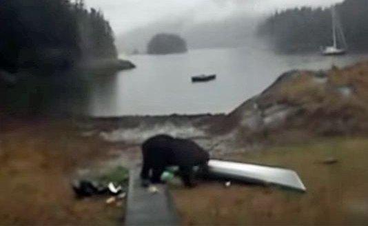 Когда косолапый стал пробовать на вкус борт плавсредства, бедная женщина потеряла самообладание. "Где твои уши, медведь?! Неужели ты не слышишь, как я говорю тебе: НЕ ЕШЬ МОЙ КАЯК!!! Отойди! Убирайся!!! Пожалуйста, заляг в спячку!" — вопила она.