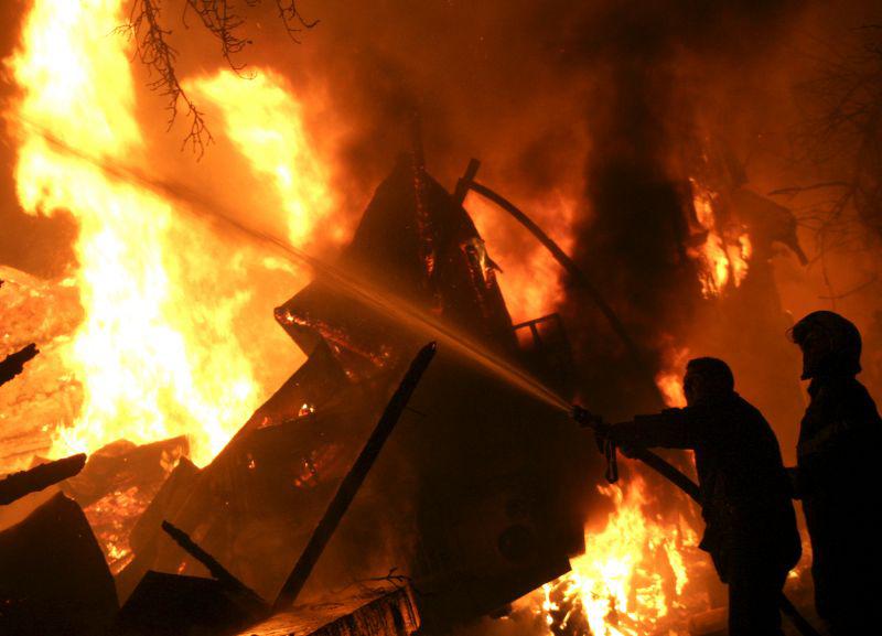 По информации источника, пожар начался в том месте, где находились переносные туалеты. После этого огонь тут же перекинулся на само здание.