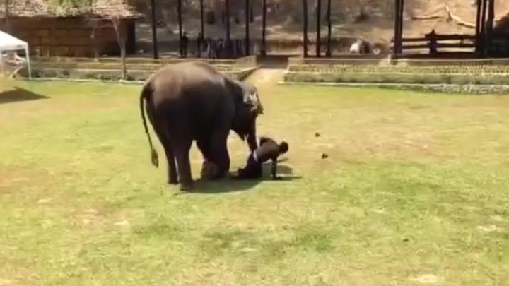 Вы только посмотрите, как этот слон отреагировал на “избиение” своего смотрителя, который заботился о животном 17 лет. Сначала я испугалась, за человеческого друга, думала, что случится что-то страшное. Но не тут-то было!