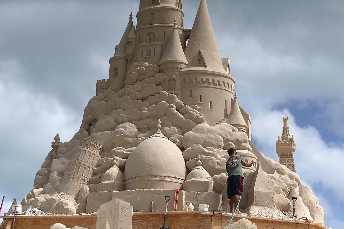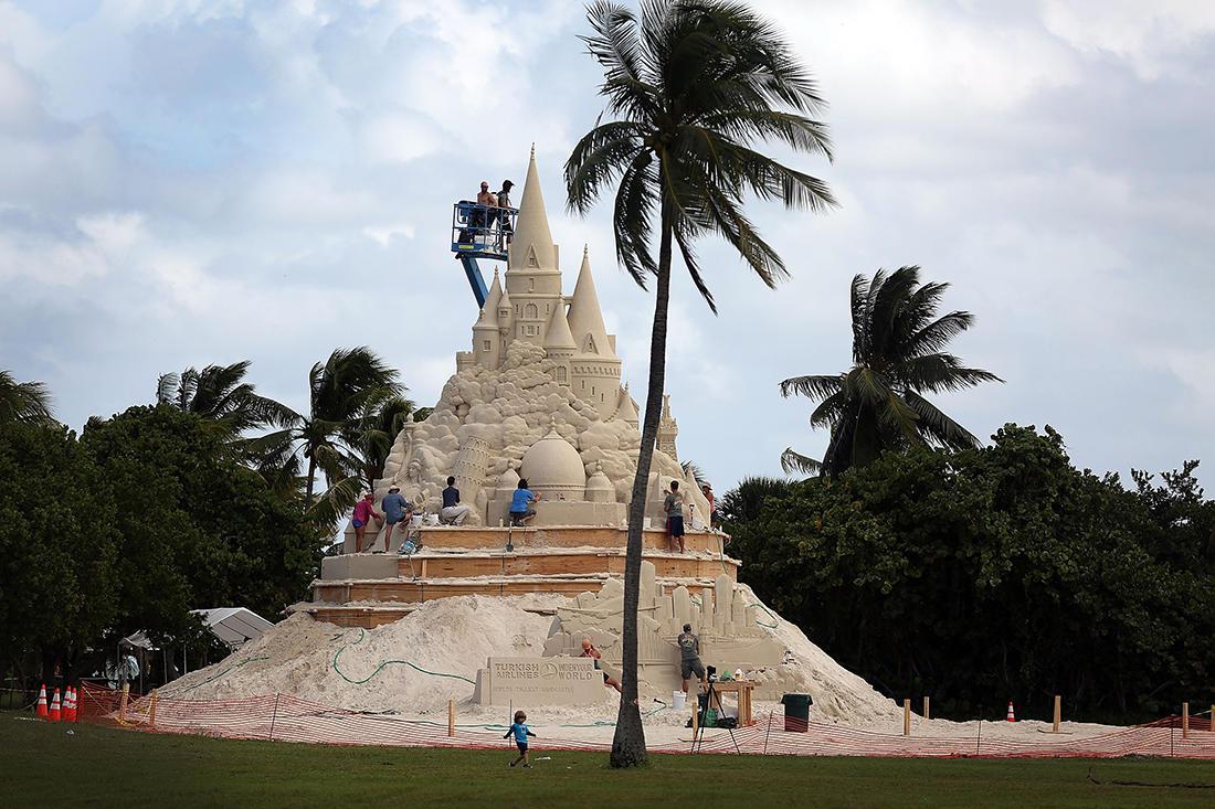 Высота песочного замка составляет 45 футов и 10,25 дюйма — это 13,98 метра. На нем изображены популярные достопримечательности, в частности, Тадж-Махал, статуя Свободы, Пизанская башня, виды Стамбула и Майами.Читайте также: Пражский Град - самый большой замок мира (ФОТО)Гигантский замок по заказу Turkish Airlines возвел скульптор Тед Сиберт, специализирующийся на строительстве объектов из песка. Нынешний мировой рекорд — восьмой в его карьере. Сиберту помогали около 20 скульпторов.Вместе они потратили 1,8 тысячи тонн песка на строительство замка. Предыдущий мировой рекорд составлял 12,59 метра.