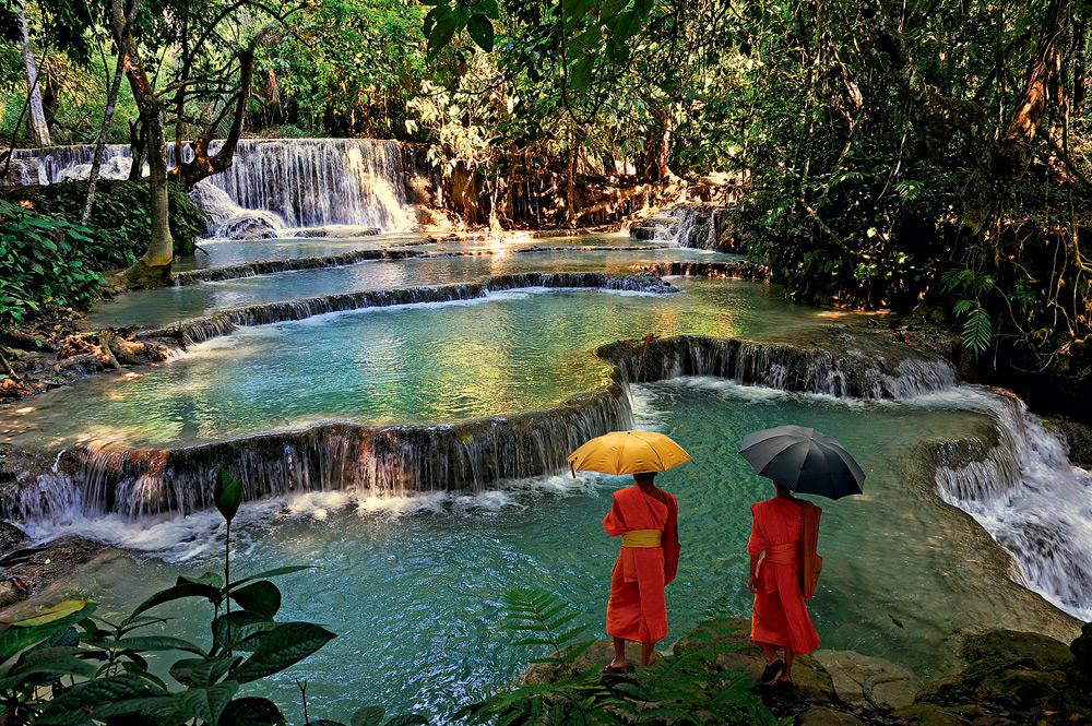По всему парку Тат-Куанг-Си слышен грохот воды. Водопад каскадом падает по уступам, один из которых достигает высоты более 50 метров. Но поражает не размер и размах, а бирюзовый цвет воды, протекающей в известняковых скалах и богатой двуокисью углерода. В период дождей водопад особенно полноводен. Популярное у местных развлечение — прыжки с тарзанки.