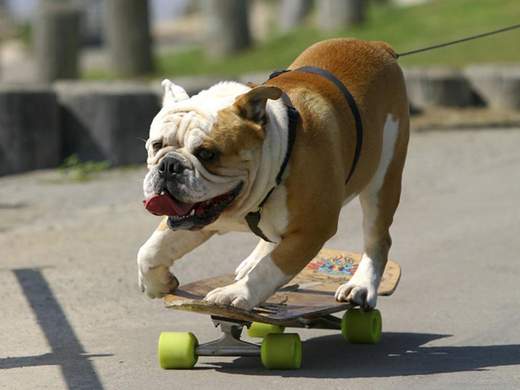 Бульдог на скейте установил мировой рекорд (ВИДЕО)