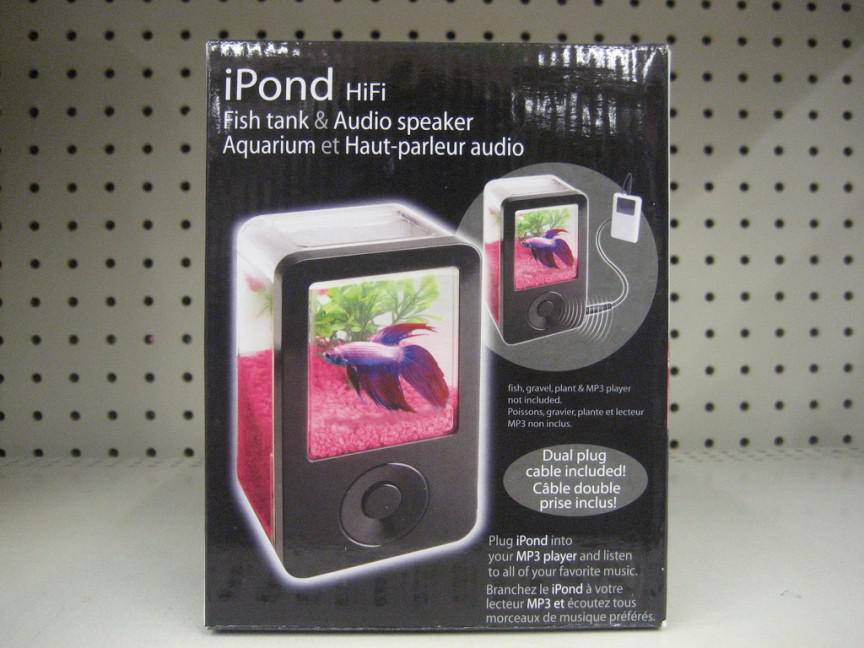 Второй аквариум в нашем списке произвёл фурор в СМИ, когда появился на прилавках в 2007 году, хотя он довольно маленький. iPond - это была колонка с маленьким встроенным аквариумом, похожая на iPod. Аквариум вмещал всего 350 мл воды. Однако общества защиты животных воспротивились распространению этого "пыточного ящика".