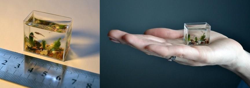 Самый маленький в мире аквариум - 30х24х14 мм. В нём может поместиться только маленькая рыбка Pandaka Pygmea.