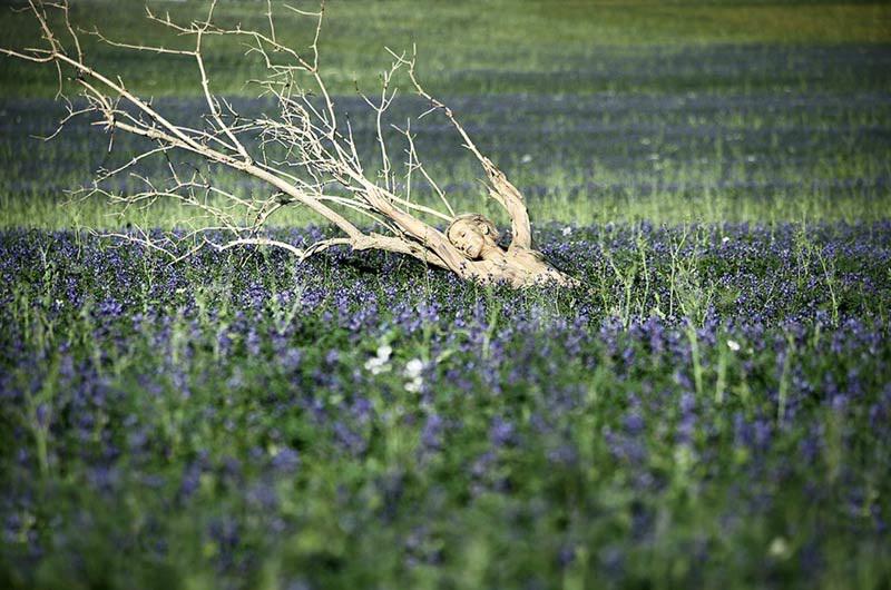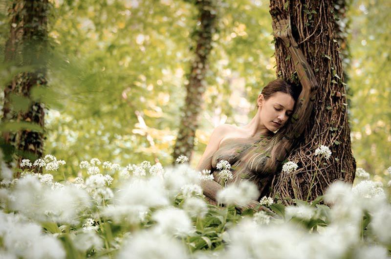 Но если внимательно присмотреться, то на этом снимке можно заметить также обнаженную женщину! Правда тому, кто разглядел ее без посторонней помощи, впору идти в разведчики.Ведь замаскировали девушку действительно искусно. Внимательно присмотрись к основанию дерева, и ты тоже увидишь силуэт женщины, которая полулежа облокотилась спиной о ствол.Лишь увеличив фотографию, можно удостовериться, что на ней действительно кто-то есть. Ведь роспись по телу выполнена просто великолепно! Поразительно, какие метаморфозы в нашем сознании вызывают такие работы!