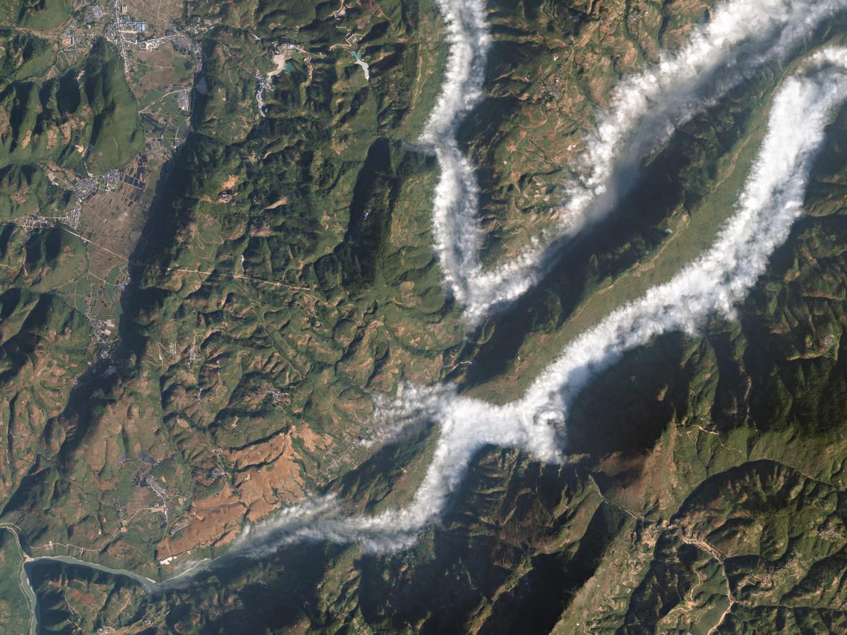 Туман на фотографии скрывает извилистую реку Танхльин в западной провинции Юньнань (КНР).
