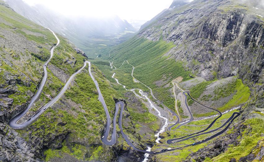 Дорога троллей, НорвегияПроехаться по этому горному серпантину можно только весной или летом: на осенне-зимний период дорогу закрывают. Дорога имеет 11 резких поворотов, а местами ее ширина не превышает 3,3 метра.