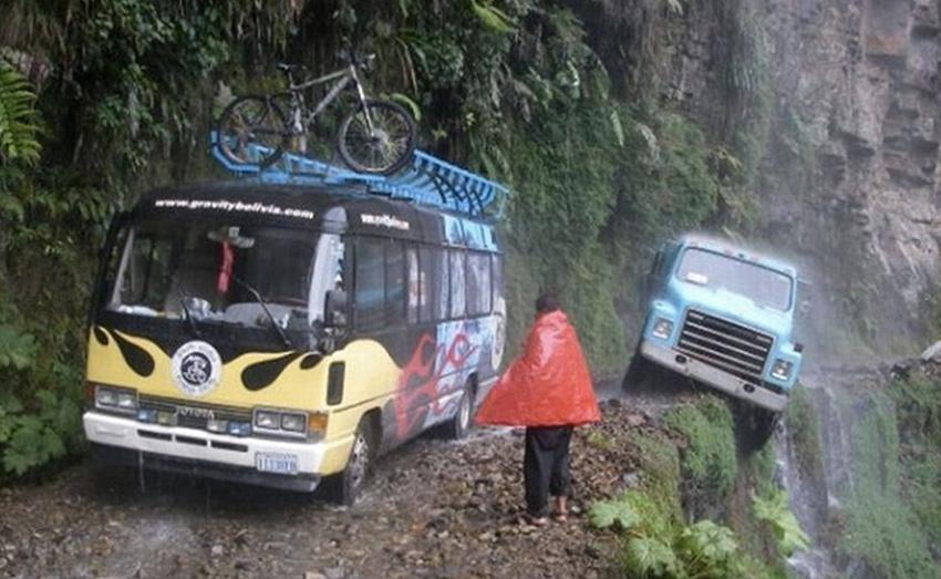 North Yungas, БоливияНеофициальное название этой дороги — дорога смерти. Шоссе соединяет города Коройко и Ла-Пас. Дорога очень узкая, местами настолько, что с трудом на ней помещается один автомобиль.