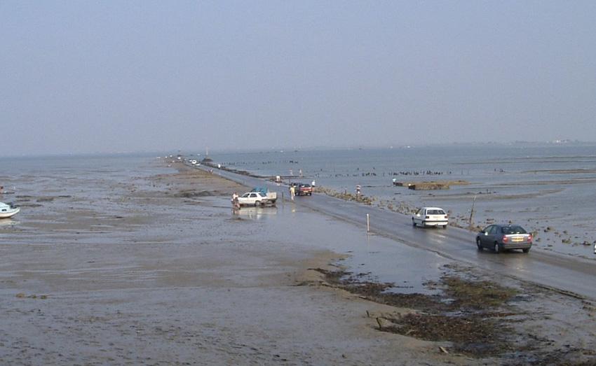 Пассаж дю Гуа, ФранцияДорога доступна для передвижения лишь несколько часов в день. Остальную часть времени она остается скрыта под водой. Перед тем как заехать на 4,5-километровую трассу, стоит внимательно изучить расписание приливов и отливов, иначе машина просто-напросто может утонуть.
