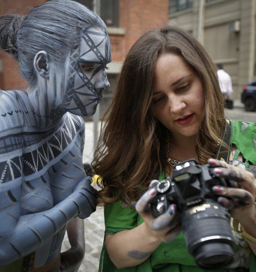 При этом процесс привлекал внимание прохожих и, особенно, скучающих водителей такси. Кто-то из прохожих вызвал полицию, однако законы Нью-Йорка позволяют женщинам ходить топлес среди бела дня, так что никаких проблем стражи порядка Трине Мерри и ее моделям не доставили.Читайте также: Невероятный фотореализм в картинах австралийского художника (ФОТО)По словам модели, ей понравилось быть раскрашенной: «Ты чувствуешь процесс трансформации. Кисточка сама по себе очень мягкая. Это больше похоже на массаж».