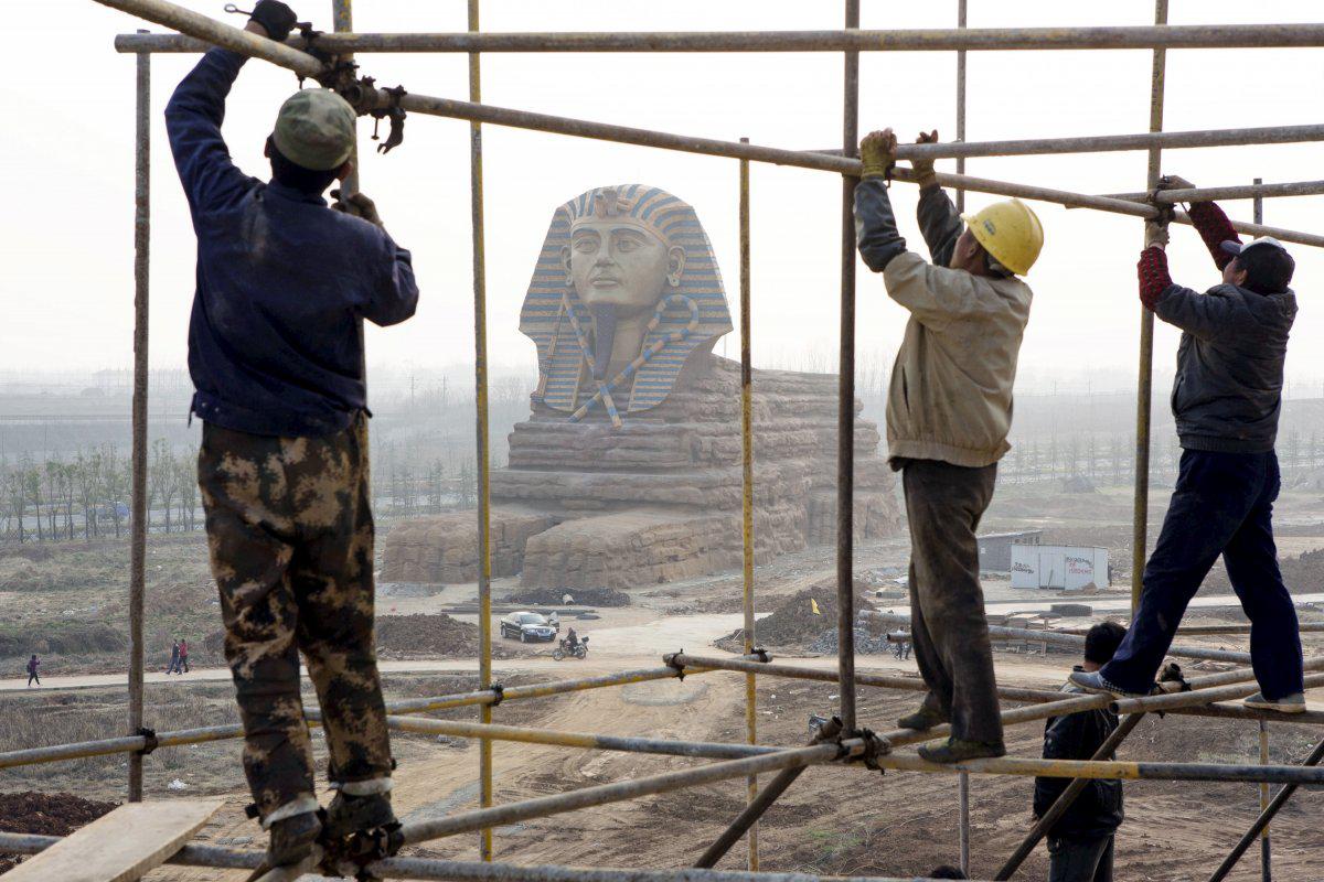 Большой сфинкс Гизы возвышается над незаконченным тематическим парком в Чучжоу. В отличие от оригинала, китайская версия не лишена носа.