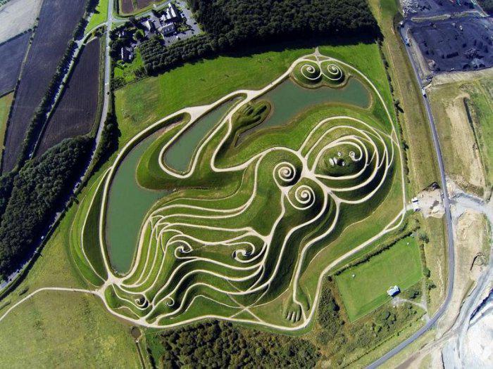 Создателем этого чуда лэнд-арта является американский дизайнер и архитектор Чарльз Дженкс (Charles Jencks). Официальное название скульптуры – Nortumberlandia. Основу скульптуры составляют отходы горных выработок близлежащих карьеров и шахт. В какой-то момент, владельцы угольных предприятий поняли, что условные терриконы можно превратить в нечто более визуально приятное, заодно разрешив несколько возникавших проблем.