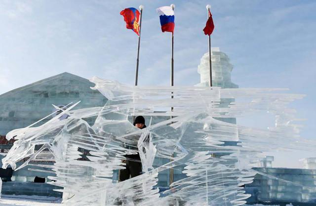 Для того, чтобы делать скульптуры изо льда реки Сунгари, помимо традиционных скребков, стамесок и пил используются и более технологичные устройства — например, лазеры. Харбин, административный центр провинции Хэйлунцзян, расположен в Северо-Восточном Китае. Зимой температура здесь может опускаться ниже – 30°C.