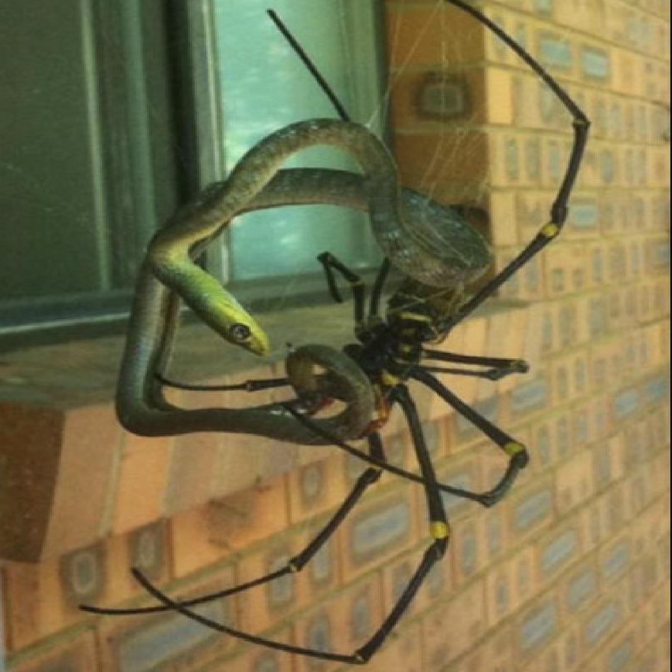 Схватку змеи и огромного паука можно увидеть прямо из окна дома.