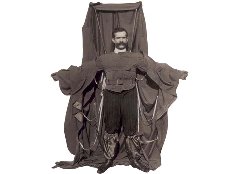 Может показаться немного странным, что изобретатель плаща-парашюта решил испытать его на себе прежде, чем это будет сделано хотя бы на манекене.