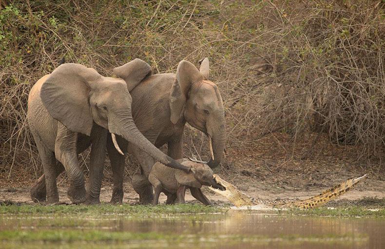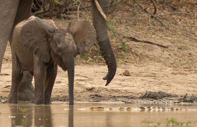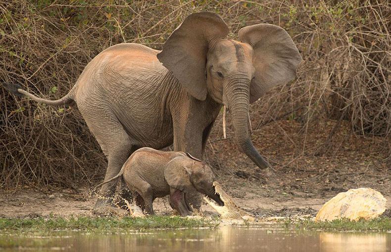 Маленький слонёнок отделился от родителей и побежал к реке. "Слоненок просто хотел напиться, он вел себя абсолютно беспечно и не думал об опасности, которая могла его поджидать в этой мутной воде", - рассказывает Франсуа Борман.Внезапно из воды появился крокодил. Хищник вцепился своими мощными челюстями в слонёнка и стал затаскивать его в воду.Мать слонёнка не растерялась, схватив малыша хоботом, начала тянуть его на себя.Читайте также: Не для слабонервных. Самые сумасшедшие селфи мира (ФОТО)Крокодил ослабил хватку и отпустил слонёнка. Ребёнок отделался испугом.