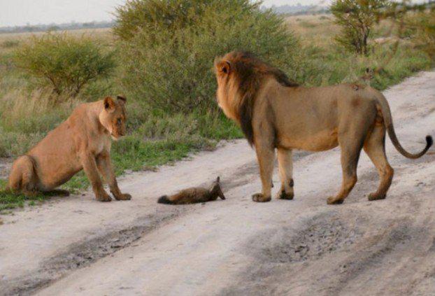 Тем не менее этим зверям не чужды человеческие эмоции. Работники национального парка в Ботсване стали свидетелями впечатляющей сцены. Они увидели львиный прайд, который степенно двигался по дороге. На их пути лежал покалеченный детеныш песчаной лисы.