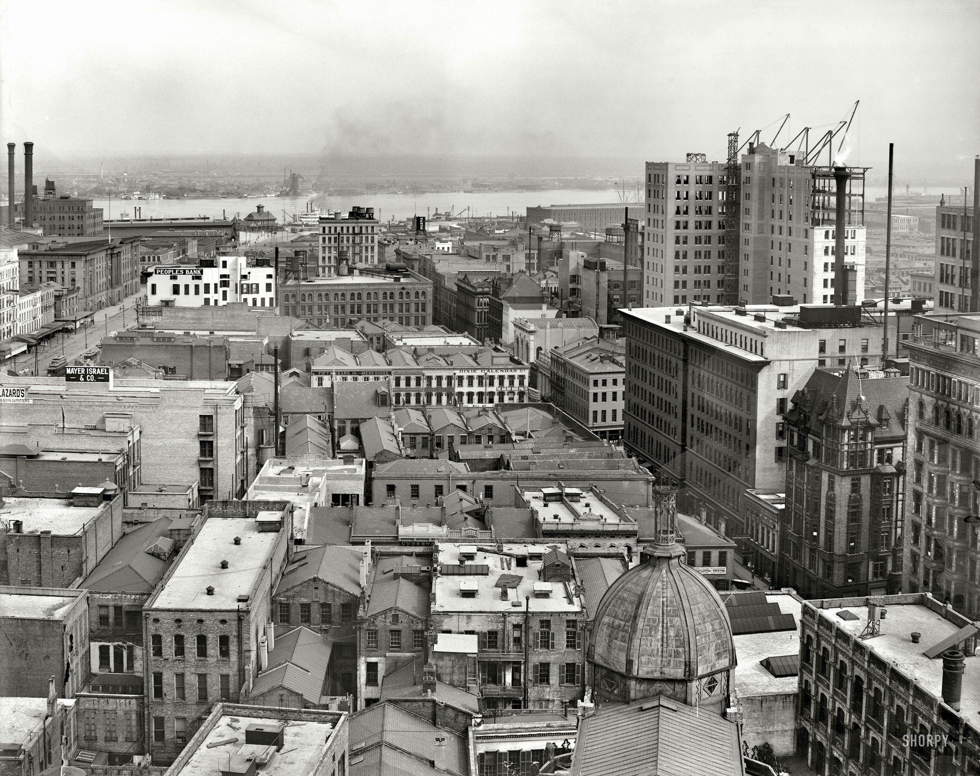 Главной проблемой были и остаются наводнения, так как его существенная часть расположена ниже уровня моря. Развитие города происходило до середины ХХ-го века. После чего начался заметный спад в экономике и развитии промышленного населенного пункта. Вашему вниманию представляется подборка исторических снимков, на которых изображена эпоха развития Нового Орлеана.