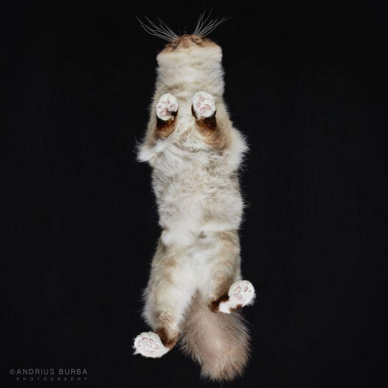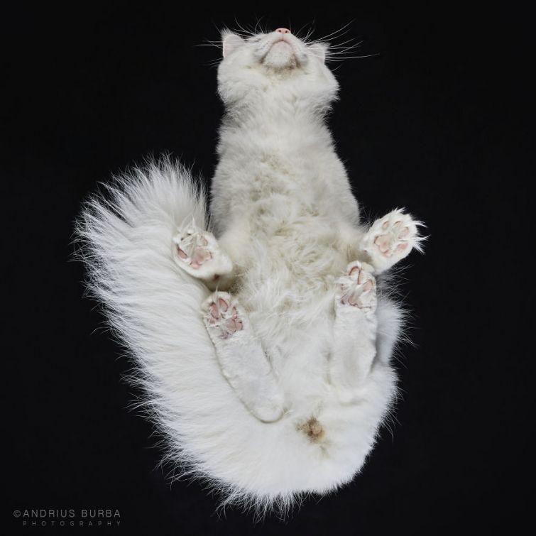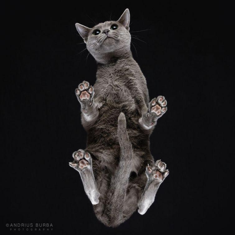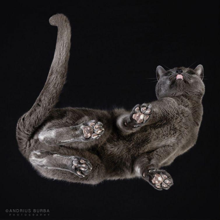 Однако фотограф Андрюс Бурба (Andrius Burba) из города Вильнюс, Литва вывел съёмку котов на новый уровень, решив фотографировать их из-под низа, размещая котеек на прозрачном столе, через который были бы видны кошачьи лапы и живот.