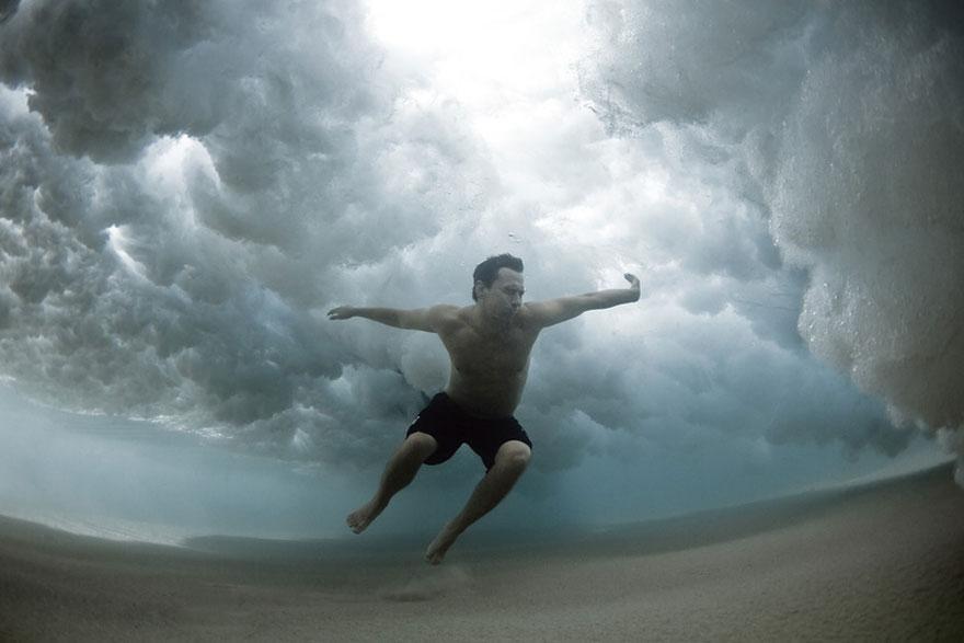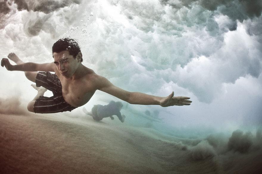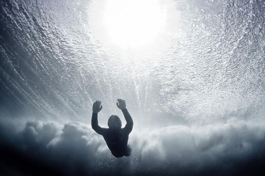 Собственно, вашему вниманию предлагается подборка снимков, сделанных во время работы на фильмом. Марк Типпл погружается под воду и снимает серфингистов, которые находятся не на гребне волны, а уже были сбиты ей и начинают борьбу с океаном. Здесь нет никаких постановок или чего-то ненастоящего.