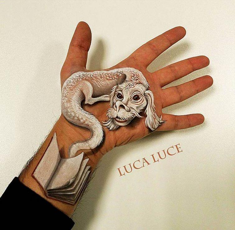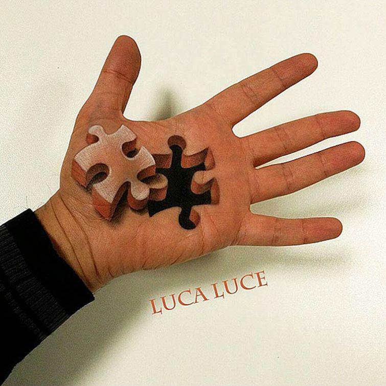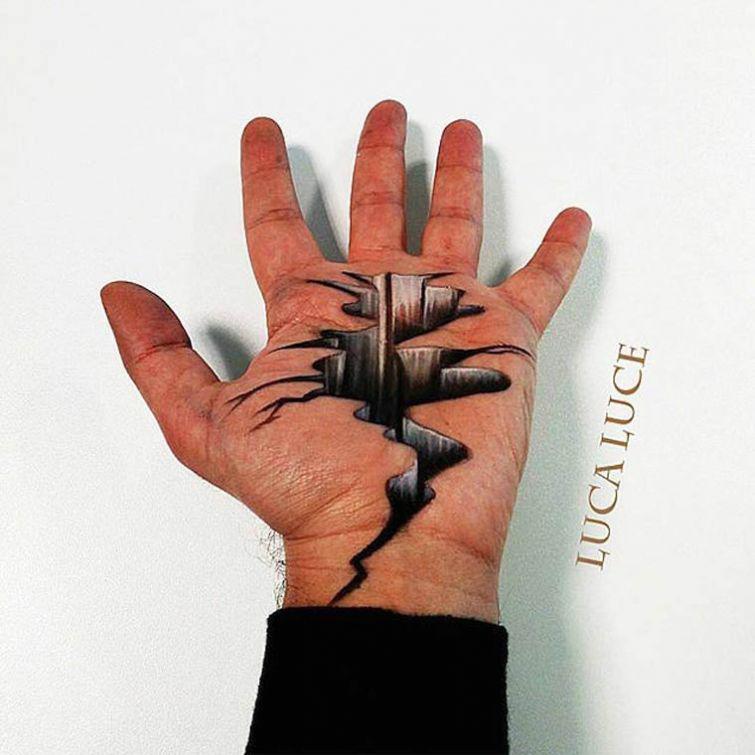 Лука должно быть пошел на сделку с дьяволом, потому что его объемные оптические иллюзии на руках обладают просто запредельной реалистичностью.
