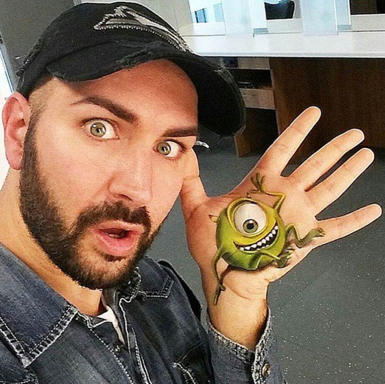 Глядя на его работы с трудом верится, что всё это было нарисовано одной правой рукой, потому как левая рука во время рисования служит ему холстом.