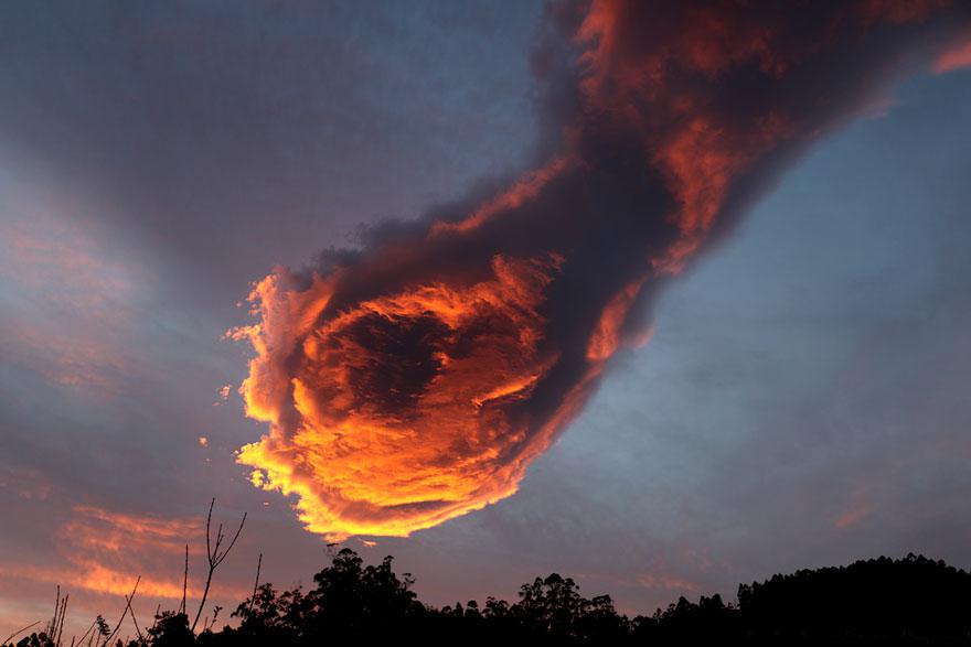 «Я заинтриговался сразу, как только взглянул на небо, оставалось лишь схватить фотоаппарат и снять кадры. Мне кажется, облако похоже на протянутую руку с огненным шаром», – сказал Пачеко.