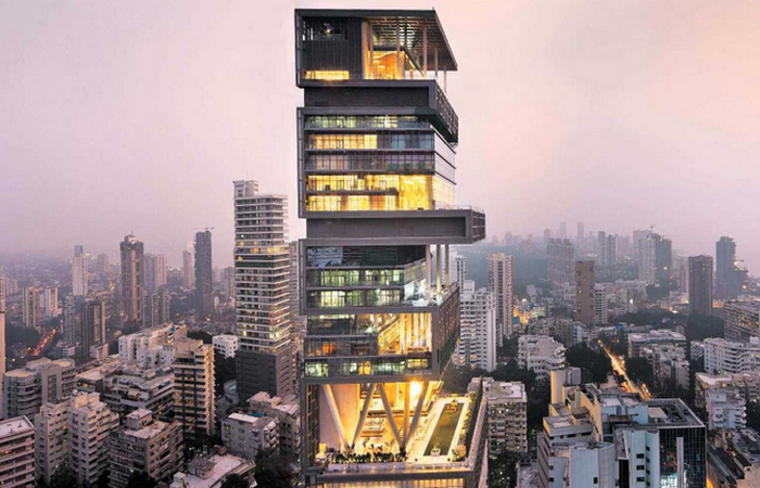 Официальная стоимость странного на вид 27-этажного дома высотой 173 метра в индийском Мумбаи составляет $ 1 млрд. Живет в этом доме, способном выдержать 8-балльное землетрясение, его владелец - Мукеш Амбани с семьей, а также 600 человек обслуживающего персонала. Площадь Antilia - 48000 квадратных метров, а помимо жилых апартаментов в нем можно найти висячие сады, двухэтажный фитнес-центр, три вертолетные площадки, кинотеатр на 50 человек, подземный гараж на 168 машин и многое другое.