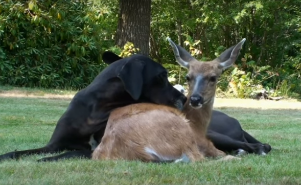 В мире животных: Нежная дружба между собакой и оленем (ВИДЕО)