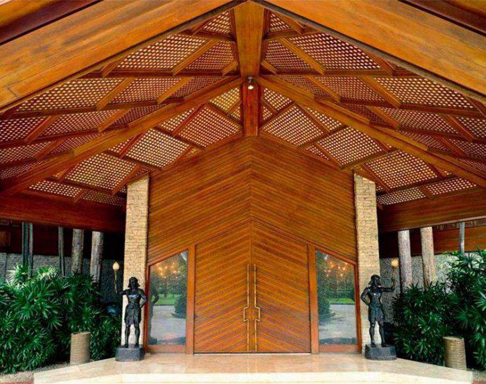 Здание так и называется – Кокосовый дворец или Tahanang Pilipino. Крыша сделана из кокосовой черепицы, опоры взяты из самых прочных стволов кокосовой пальмы. Внутри дворца на полу лежит кокосовый паркет, поверх которого расположились ковры из кокосового волокна.