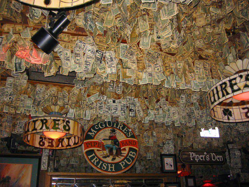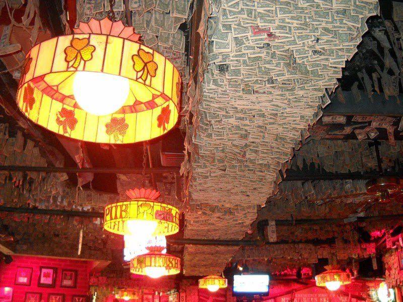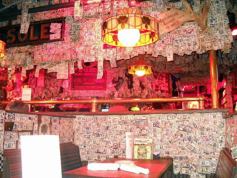 Этот паб был открыт в 1982-м году на месте, где до этого, почти 60 лет, был ресторан, а еще раньше пожарная станция. Сегодня, это почти 2000 квадратных метров на 400 посадочных мест. Итак, что же особенного в интерьере этого заведения? Стены и потолок паба увешены долларовыми банкнотами, которые оставляют здесь посетители.