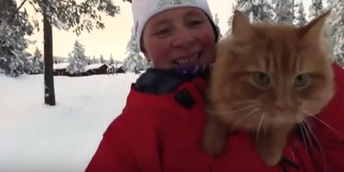 Кот в упряжке. Жительница Норвегии катается на лыжах с помощью домашнего питомца (ВИДЕО)