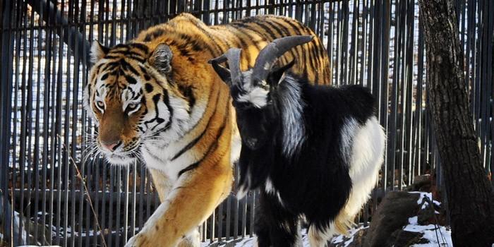 Третий не лишний. Тигр Амур и козел Тимур живут с леопардом (ВИДЕО)