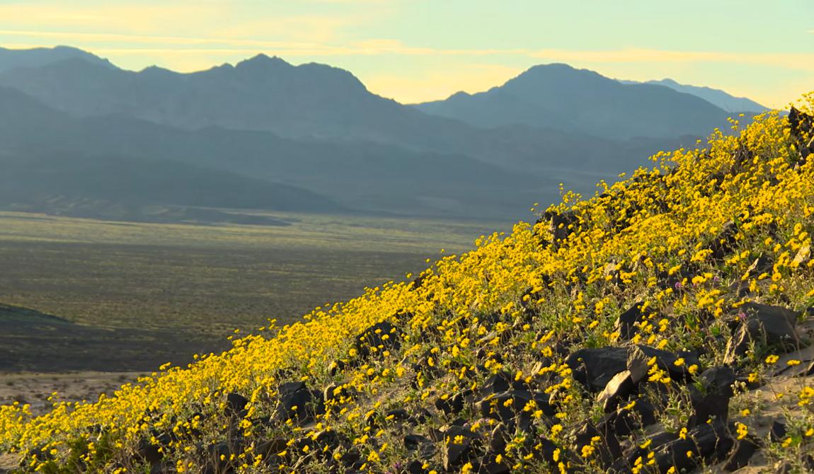 И, тем не менее, в этом году туристов в Долине Смерти хоть отбавляй. Цветы, чьи семена годами спали, присыпанные раскаленным песком, дали всходы после урагана Эль-Ниньо — и Долина зацвела.