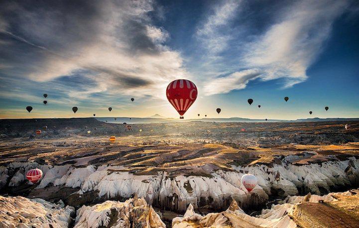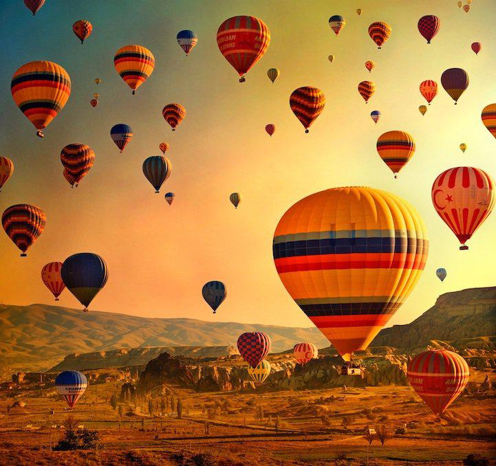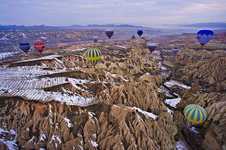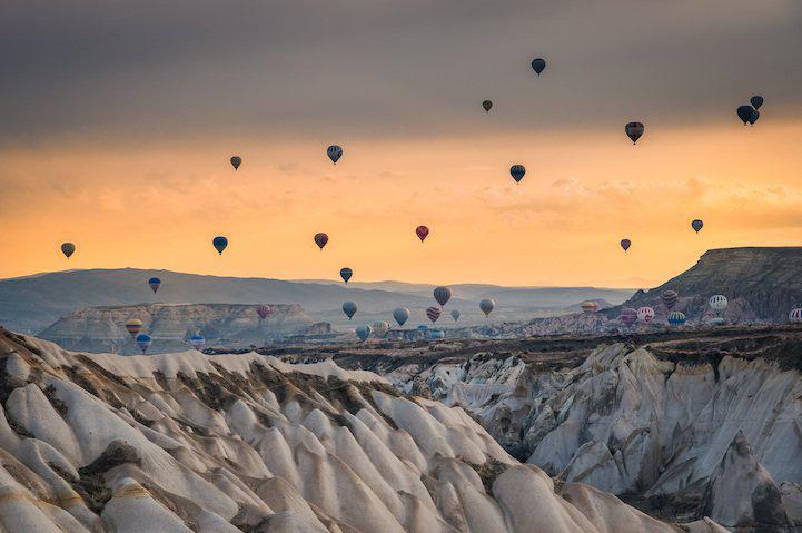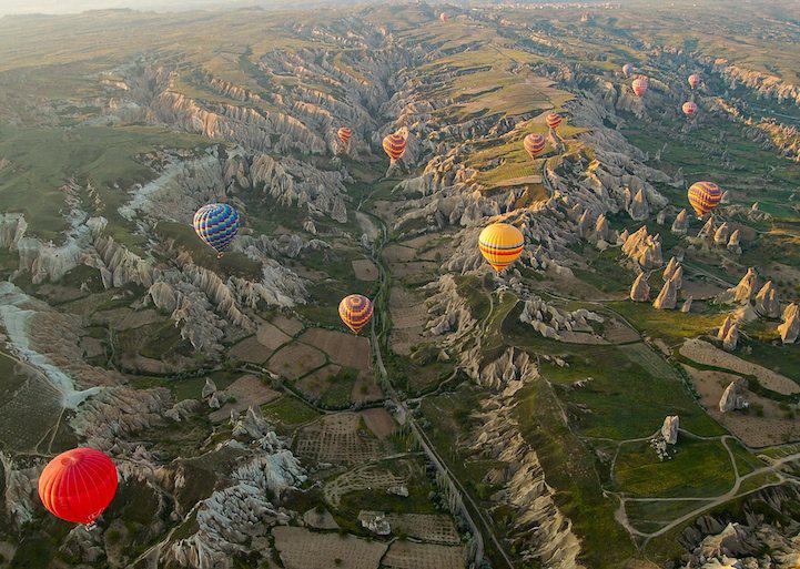 Местность в Каппадокии часто называют «лунным пейзажем». Практически каждый день, здесь в небо поднимаются сотни воздушных шаров, с желающими увидеть эти сюрреалистические пейзажи во всей красе. Лавовые отложения в виде нынешних гор, эти пейзажи делают как раз неестественных расцветок.