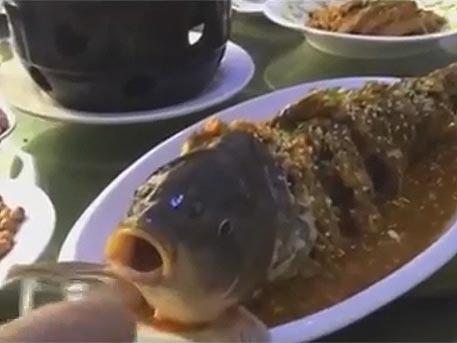 Приготовленная в ресторане рыба ожила на тарелке (ВИДЕО)