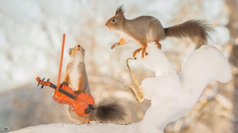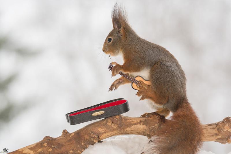 Герт Вегген прославился тем, что застает с фотоаппаратом этих пушистых гостей за непривычными занятиями. Никто не мог предположить, что у белок есть скрытые способности к музыке. Прошлые снимки шведского фотографа публиковались в известных изданиях, а один из фотосетов украшал первую полосу National Geographic.