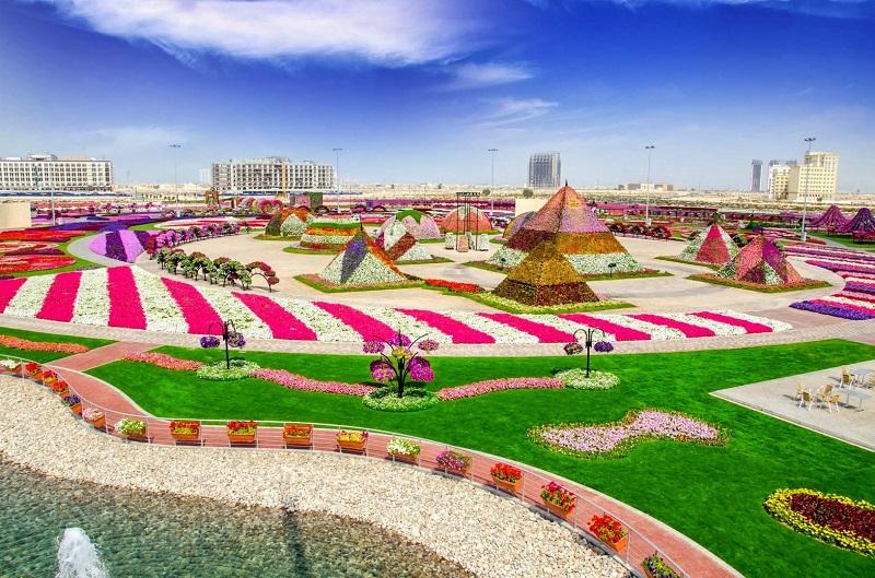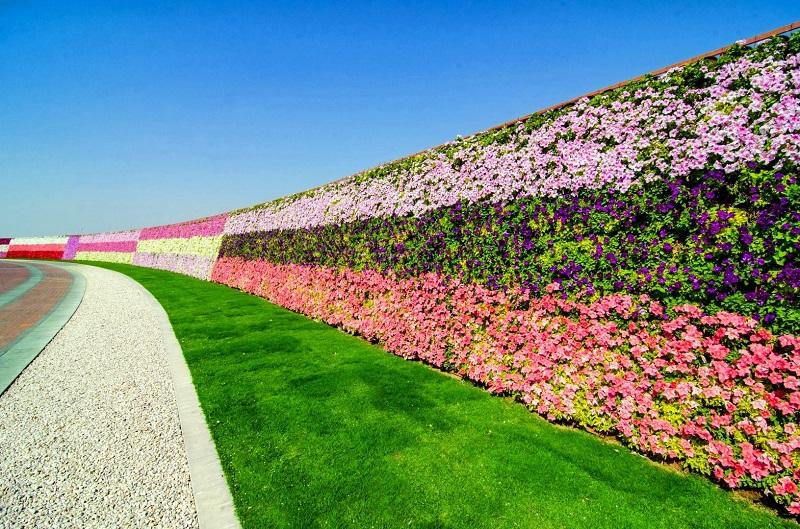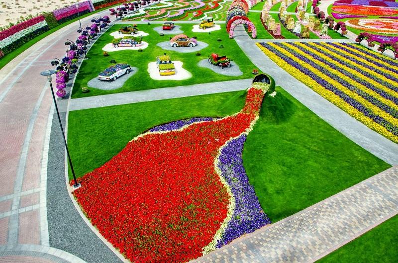 Чудо-сад в Дубае, детище компании "Akar Landscaping & Agriculture Company", представляет собой необъятный оазис посреди огромной безводной пустыни площадью 72 000 кв. м. На его территории высажено около 45 миллионов цветов, образующих великолепные формы и поражающих богатством красок. Всего здесь произрастает порядка 45 видов растений, большинство из которых были специально доставлены в ОАЭ из зарубежья (Германия, США, Италия и др.), чтобы авторы проекта смогли воплотить свою грандиозную идею в жизнь. Над созданием дубайского произведения флористического искусства трудились дизайнеры по вертикальному и горизонтальному ландшафту со всего мира. Местные жители и гости столицы Объединенных Арабских Эмиратов называют парк-сад в Дубае "частицей рая " и "чудом в пустыне ".