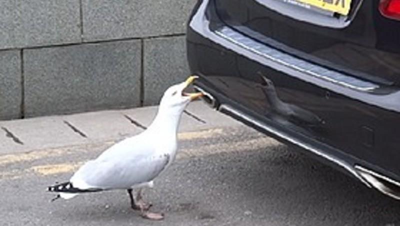 Смелая чайка пыталась заклевать бампер авто (ВИДЕО)