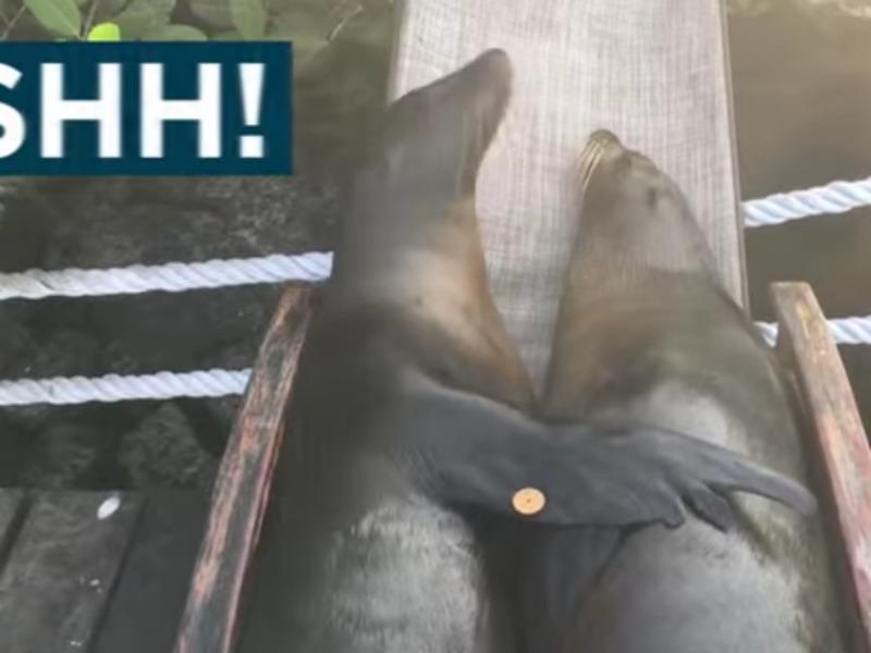 Морские львы на Галапагосах заняли пляжные шезлонги (ВИДЕО)